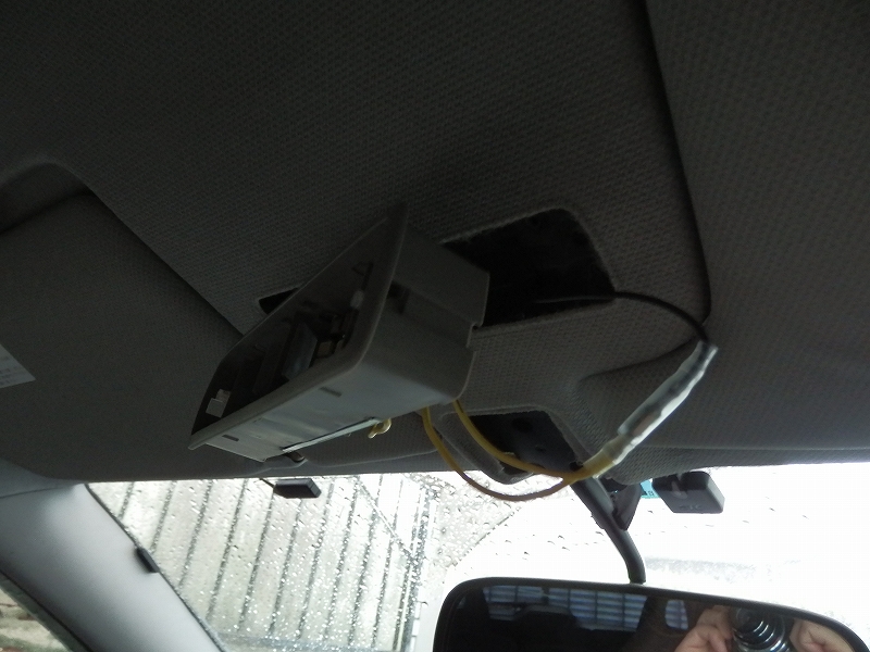 フロントマップランプにドア連動用の配線をハンダ付けで増設。
