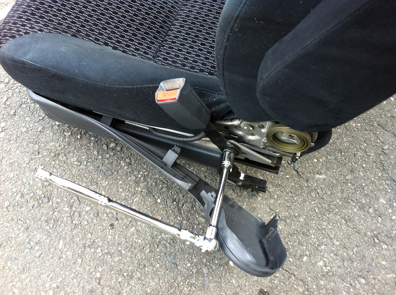シートベルトアンカーはレールに移設するので大切に扱う。