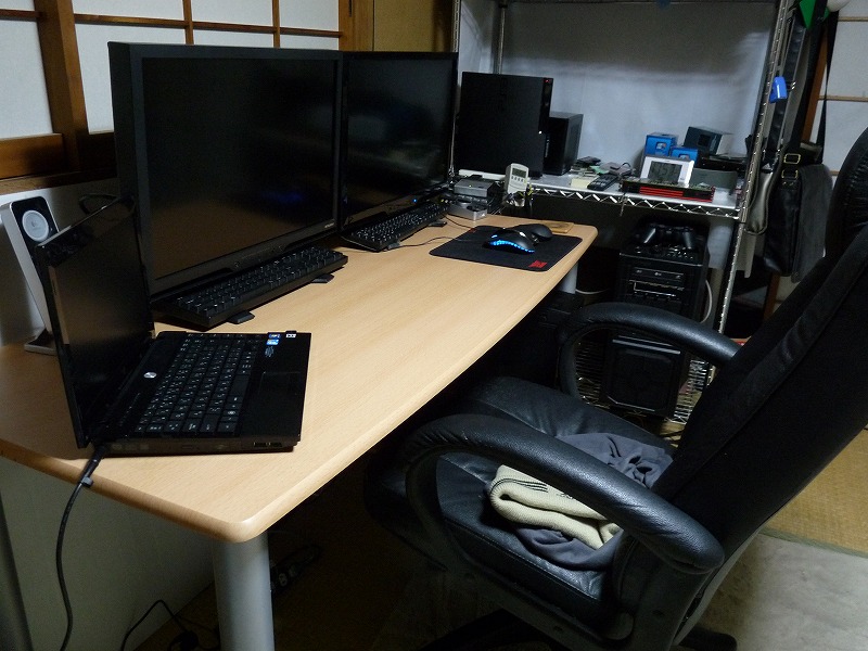 現在は、PCの数も減り私の周りにあるPCはデスク3台とノート1台と言う構成です。