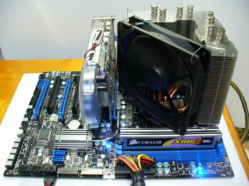 intel環境で考えると、フロントからリアに流れるようにファンが固定出来るようにクーラー本体をM/Bに固定するのが一般的です。