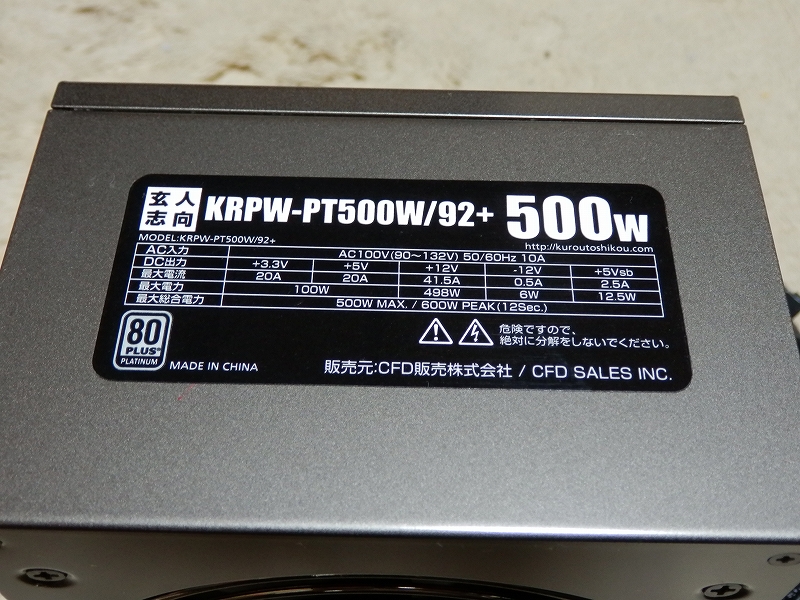 玄人志向 KRPW-PT500W/92+のレビューです。