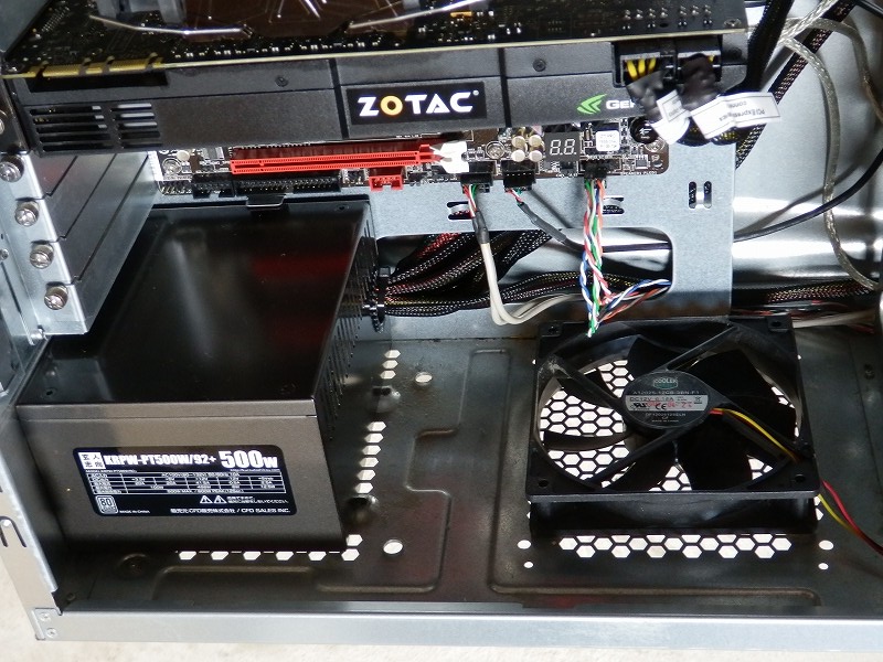 電源の前にあるファンとの距離を見れば、どれだけコンパクトな電源か一目瞭然ですね。