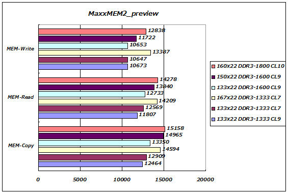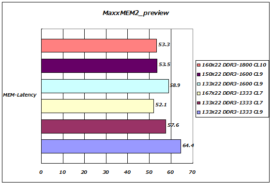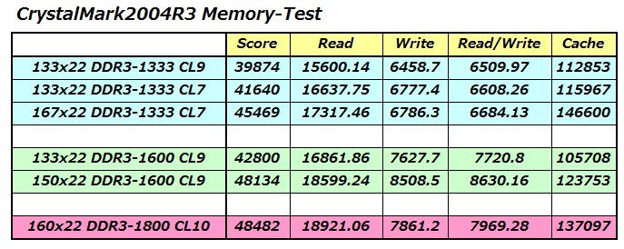 やはりBCLKの増加とクロック動作の高さから、DDR3-1800が一番良い結果となっています。