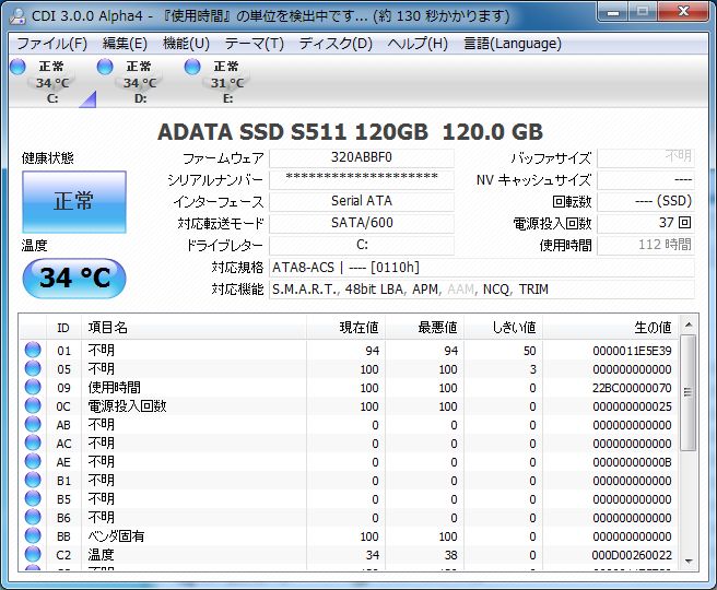 ADATA S511S3-120GM-Cを使ってCDMをしてみました。