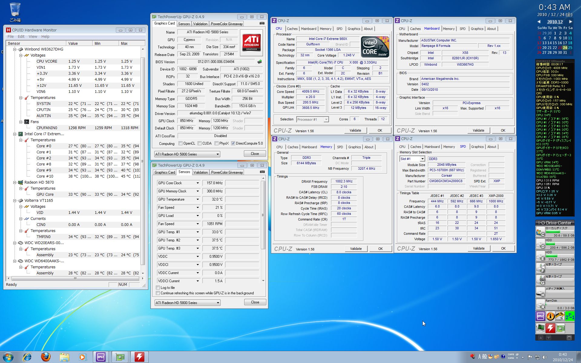 980Xは200x20のVcore1.25(CPU-Z読みアイドル1.248)DDR3-2000設定です。