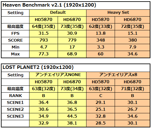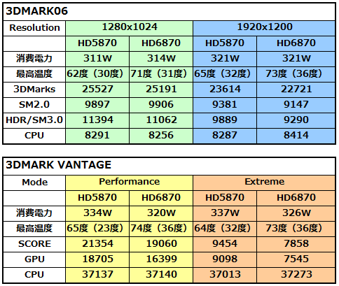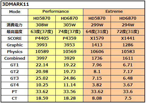 ほぼHD6870のスコアがHD5870を上回る結果になりました。