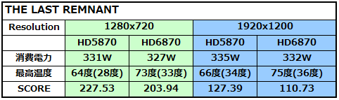 比較的消費電力の多いTHE LAST REMNANTで見て見ると若干と言えるレベルの削減が見られました。