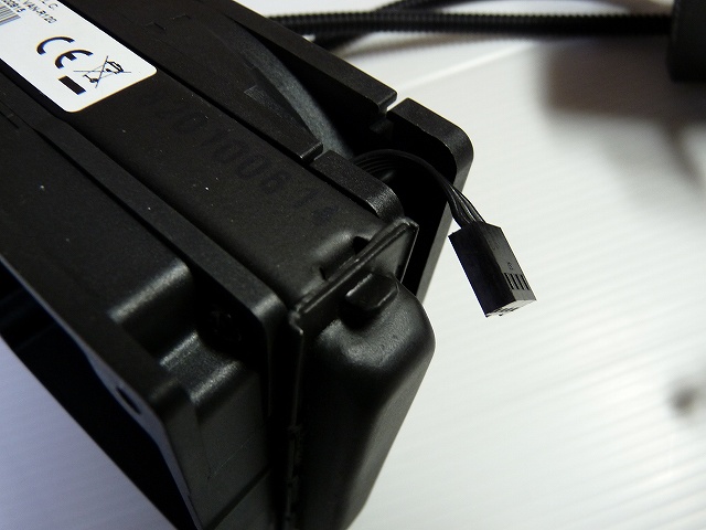 本体からM/BのCPU_FANコネクタに挿し込み、そこから分岐しているケーブルと接続します。