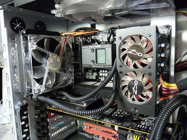 使用ファン:120mmファン2400rpm(CoolerMaster Aquagate Max付属ファン) "デュアルファン"