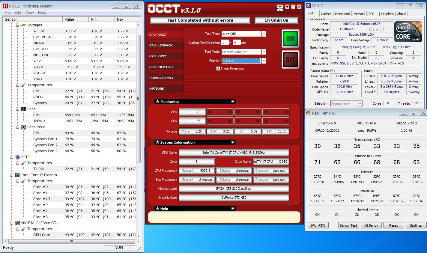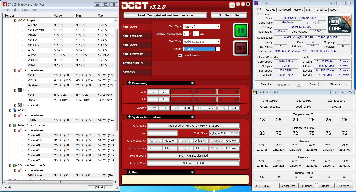 温度監視ソフト:RealTempGT&HWMonitor1.16