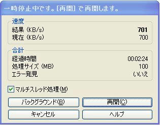 WinRARのベンチマーク・ハードウェアテストを使って、100MBまでの時間を計測。