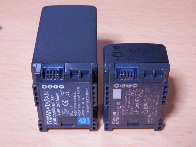 ちなみにBP-827は対応バッテリーの中で一番大容量バッテリーとなる。