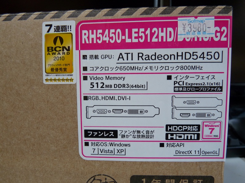玄人志向 RH5450-LE512HD/D3/HSG2