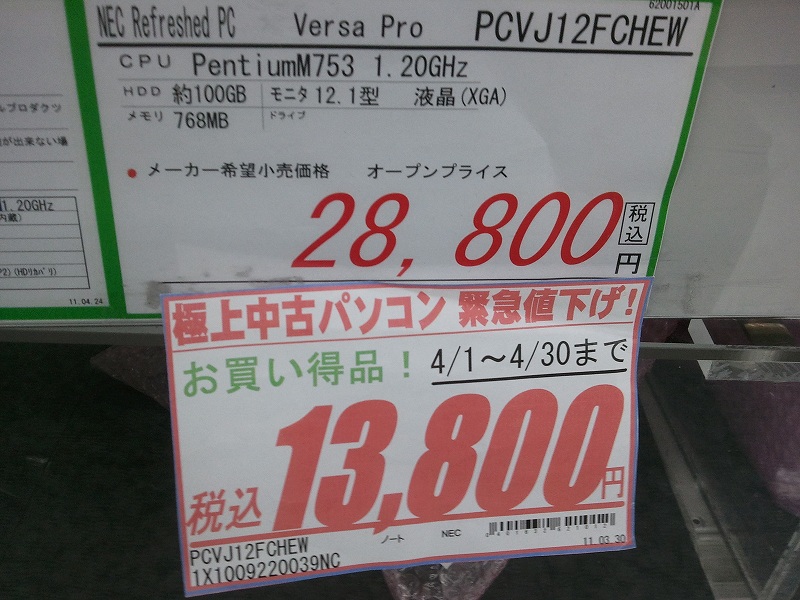 と言うのも、こいつはリファービッシュPCらしいです。