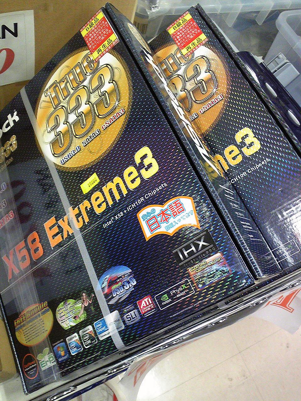 J&Pで発見したX58 EXtreme3ですが再生品で¥9.800-とお買い得でした。