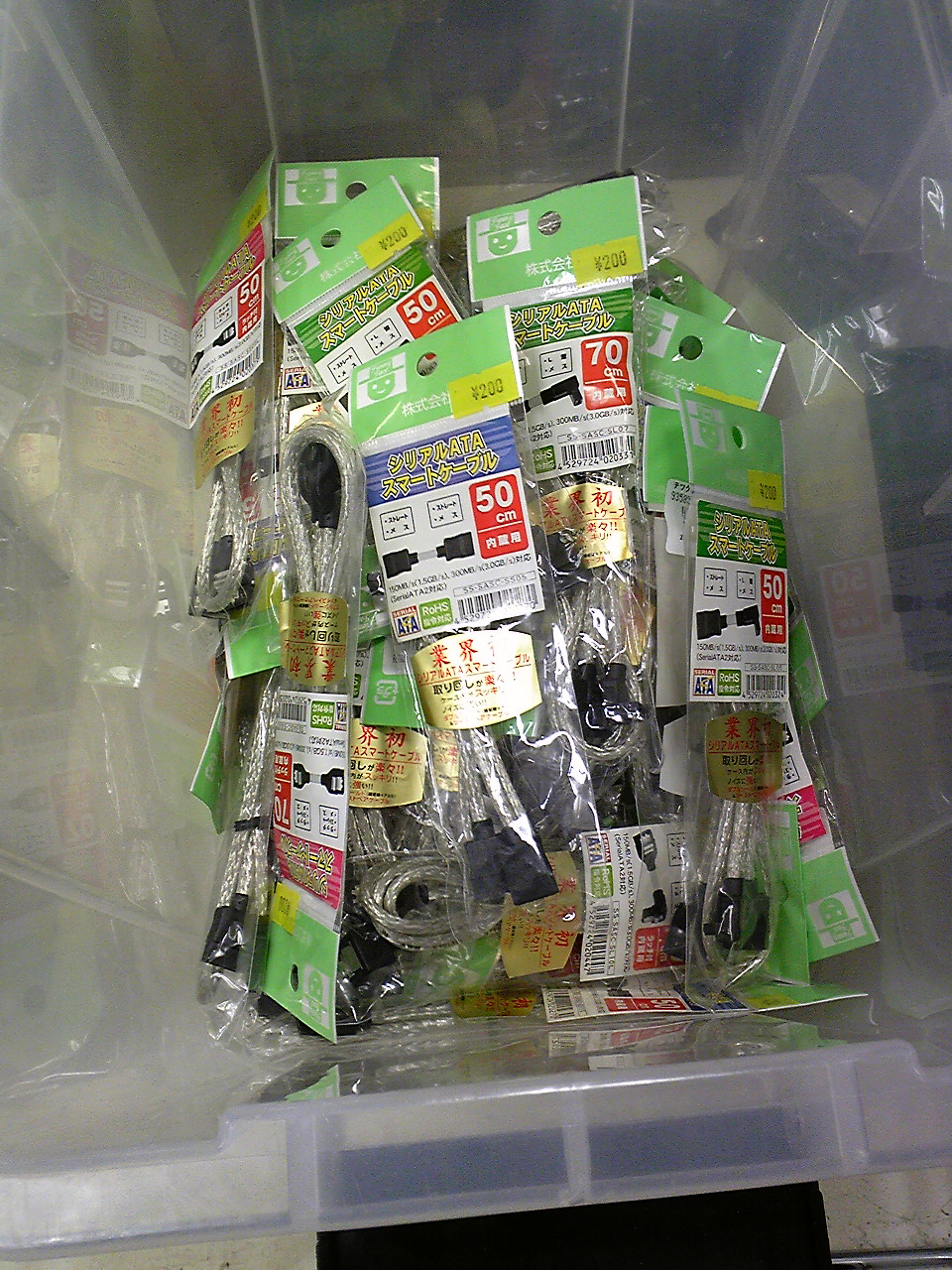 ジャンクコーナーでいつも買っている親和製SATAケーブルがたくさんありました。