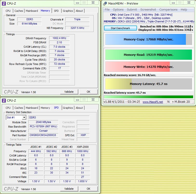 勿体無いので最終的には、DDR3-2000、8-8-8-20-60-1Tの1.55Vで行く事にします。