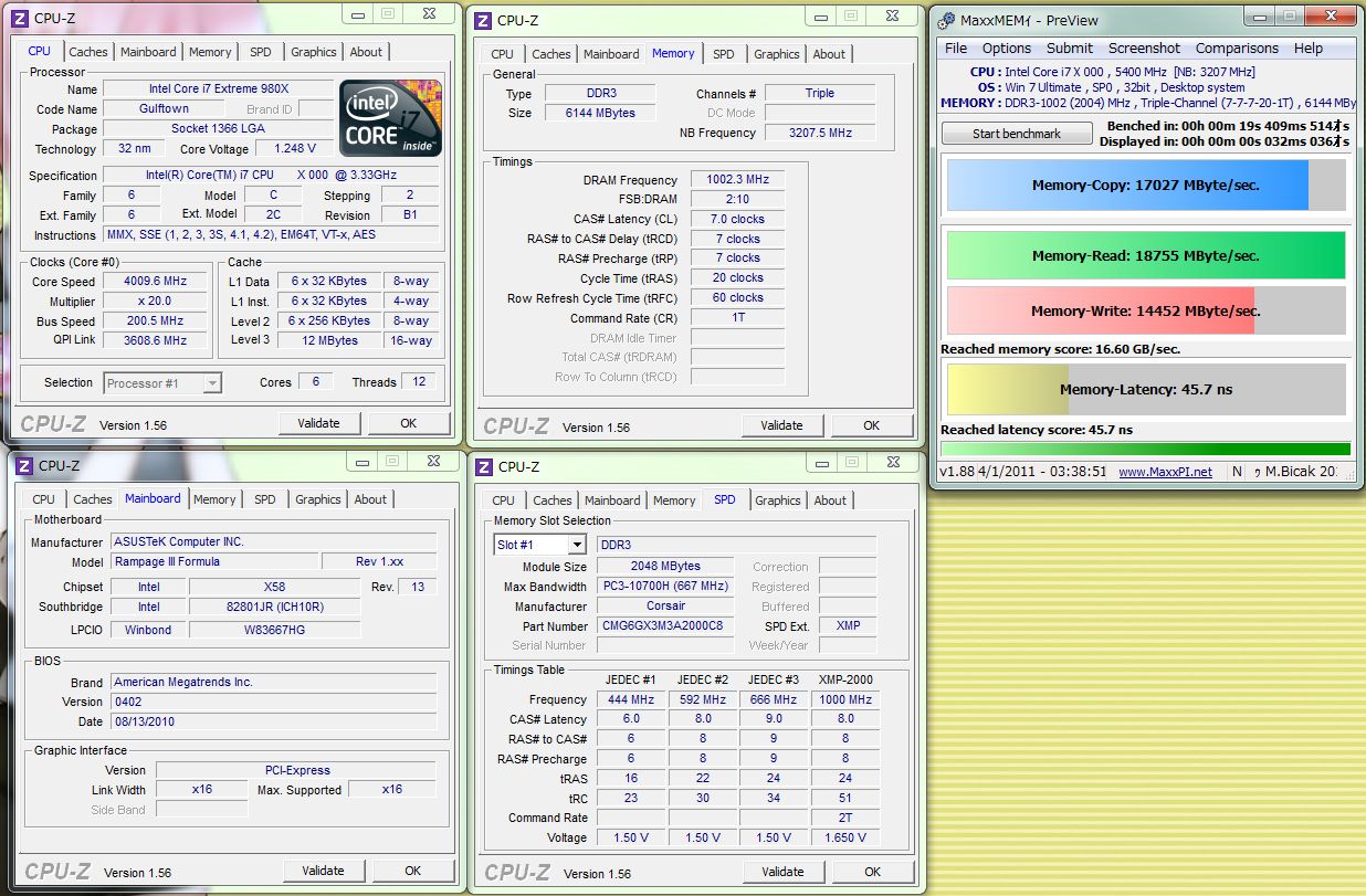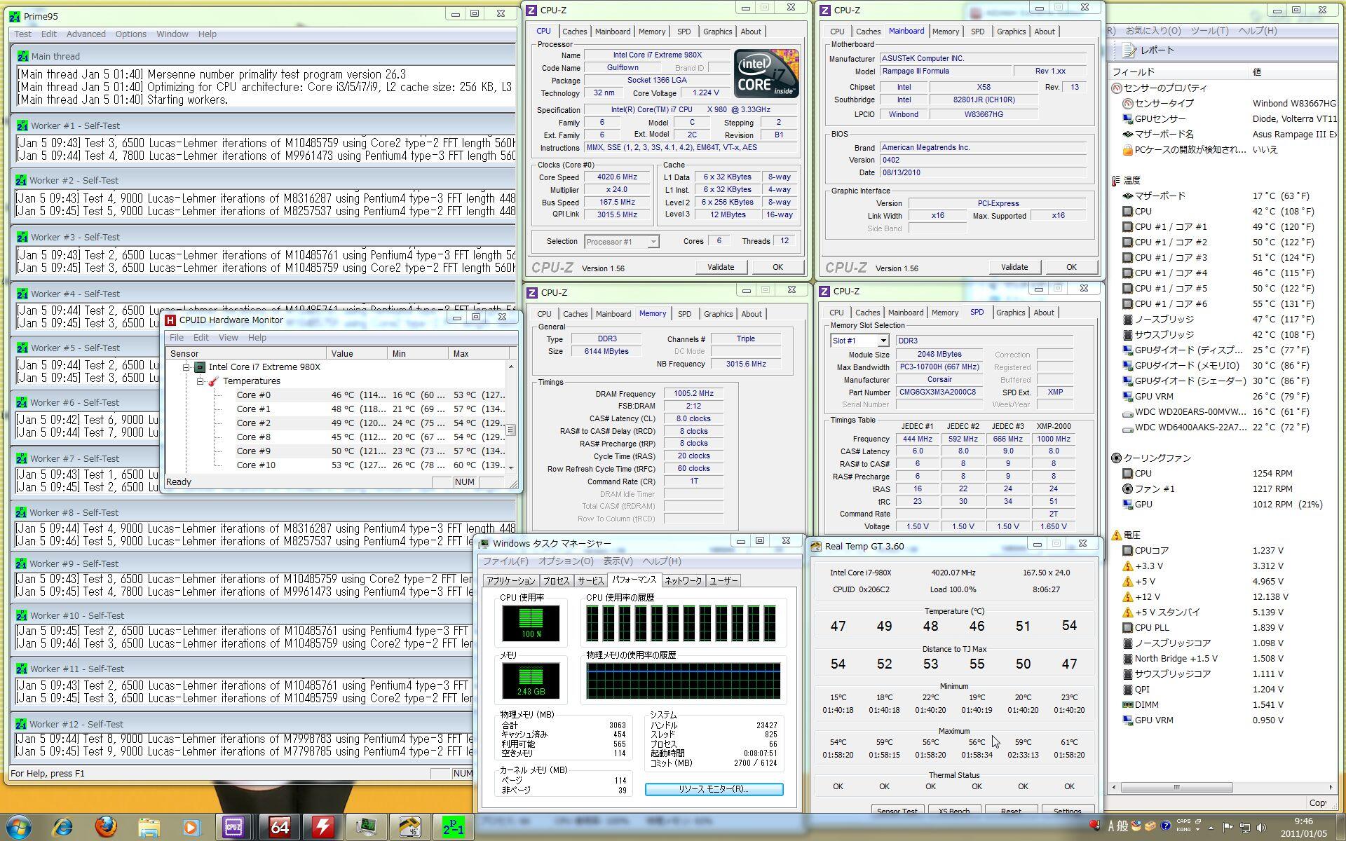 980Xは200x20のVcore1.25(CPU-Z読みアイドル1.248)DDR3-2000設定です。