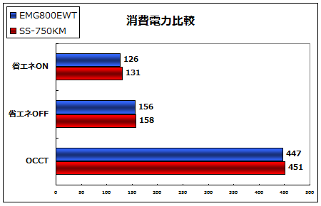 800Wと750Wのゴールド電源でどのように消費電力に差が出るのか?