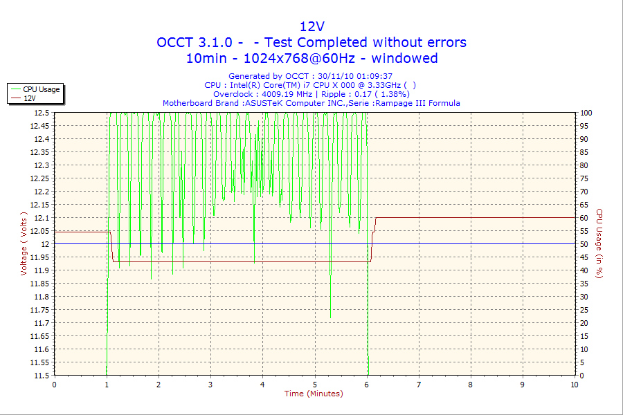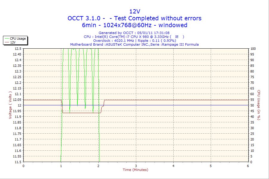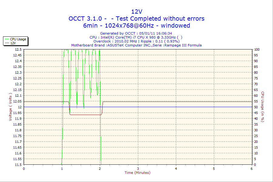 アイドル時の省エネON/OFF時の消費電力とOCCTのPowerSupplyを6分設定で実行。