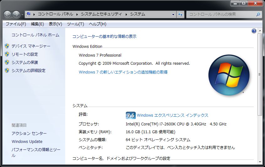 メモリ16GBの大容量使いなんでシステムは11.1GBになってます。