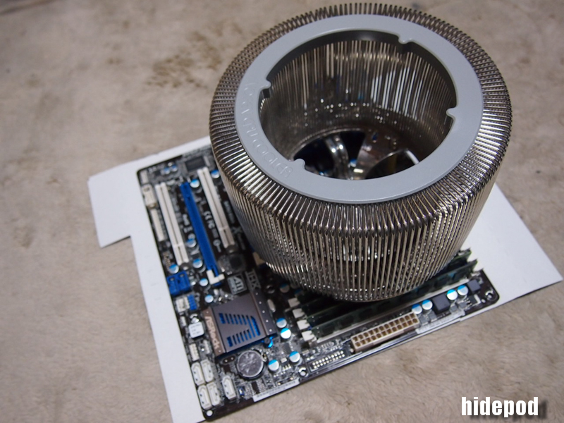 P55のM3Gでは、トップファンに干渉しなかったけど、さすがにASRockはCPUソケット位置が上方向に配置されているのでトップファンと見事干渉した。