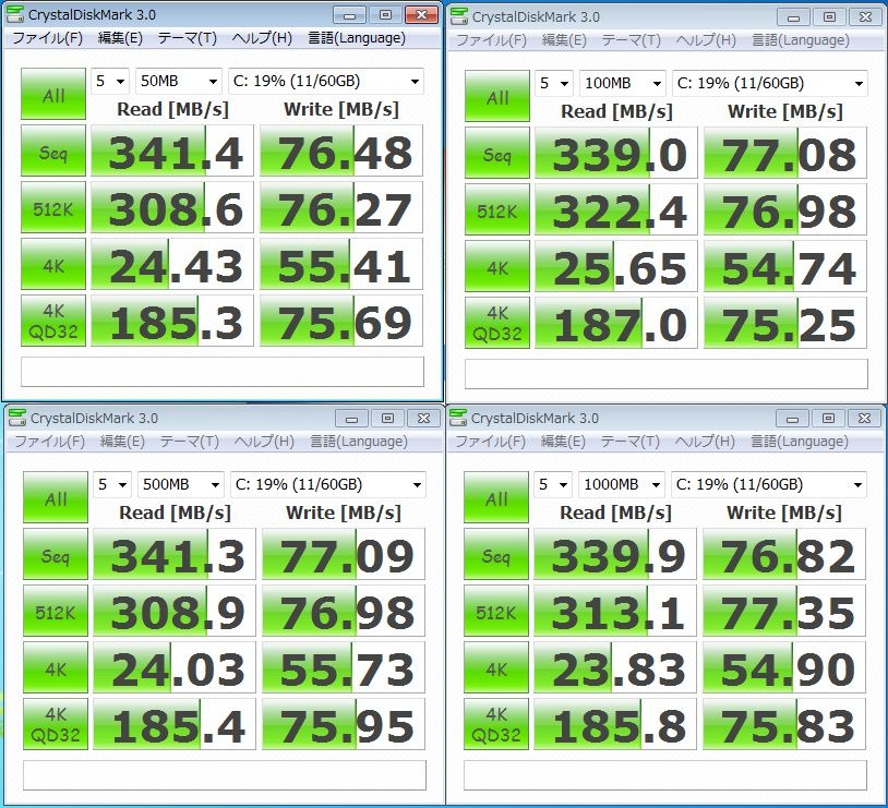 使用感は、もちろんながら今まで使用していた中身がintel-G2なA-DATA ASINTS-80GM-CSAと体感的には遜色無し。