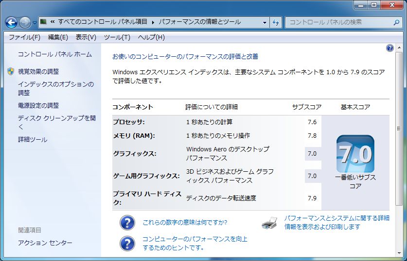 Win7のエクスペリエンスでも7.9を叩き出してくれました。