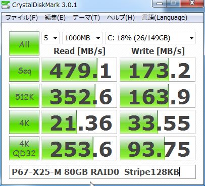 そんな使い倒しているSSDとのRAID0ですが、十分な速度だと思います。