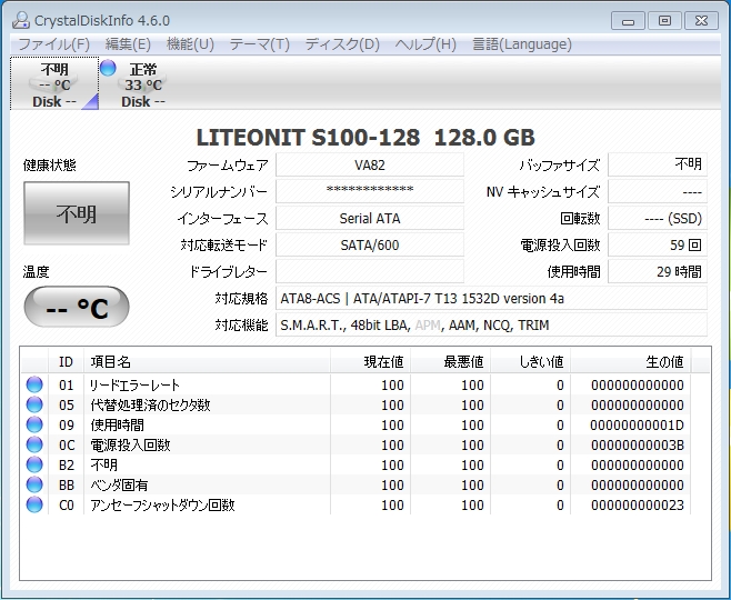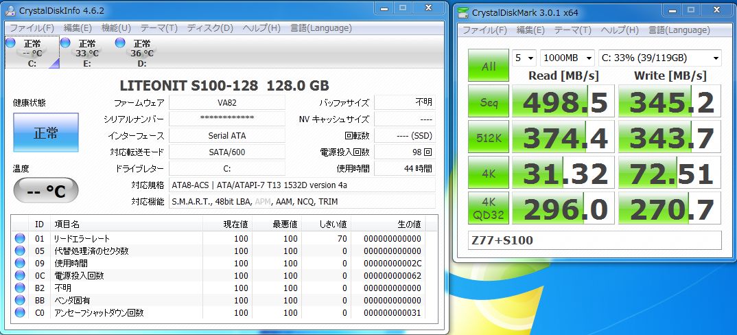 LITEON S100 128GB (LAT-128M3S-16/S100-128)のベンチマークです。