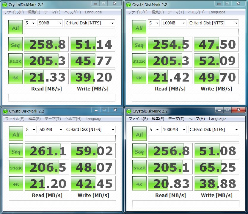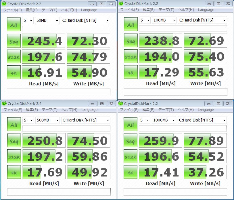 1000MBしかなかったのであまりよく解らない結果になってしまいました。