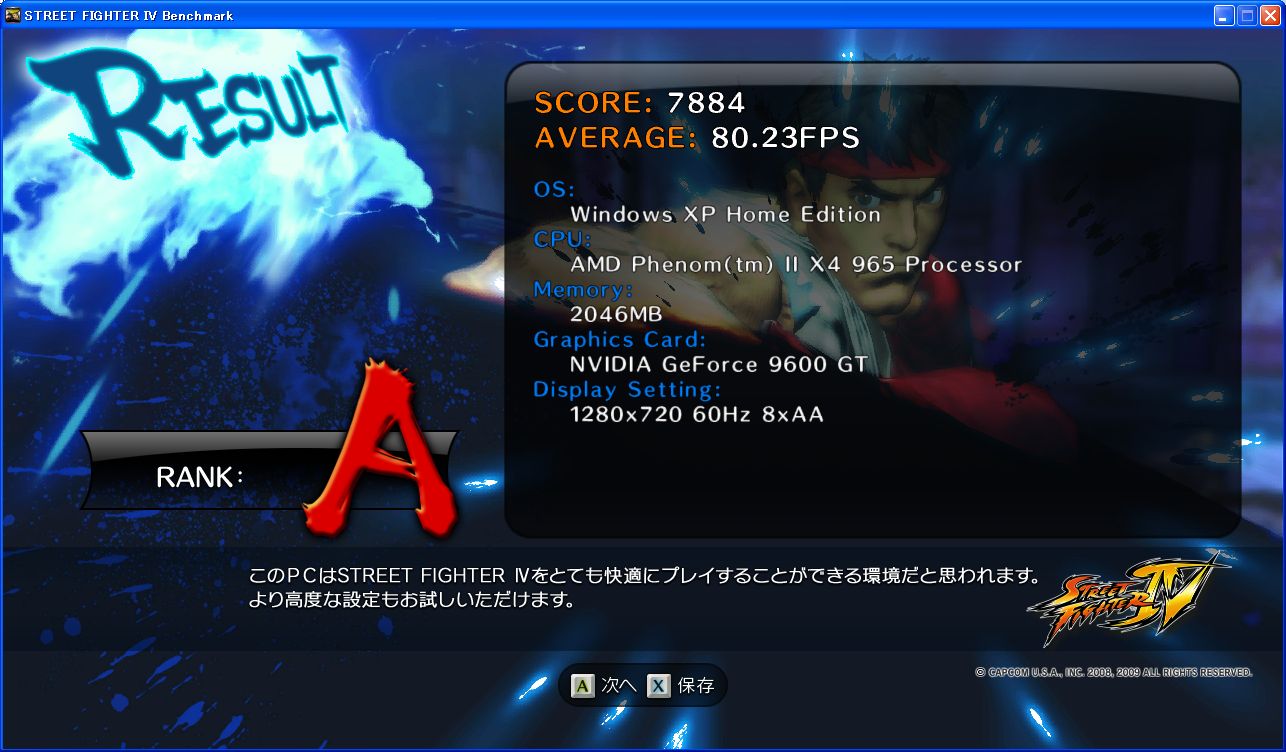 | XP 1280x720 9600GT | A | 80.23 | 7884 |