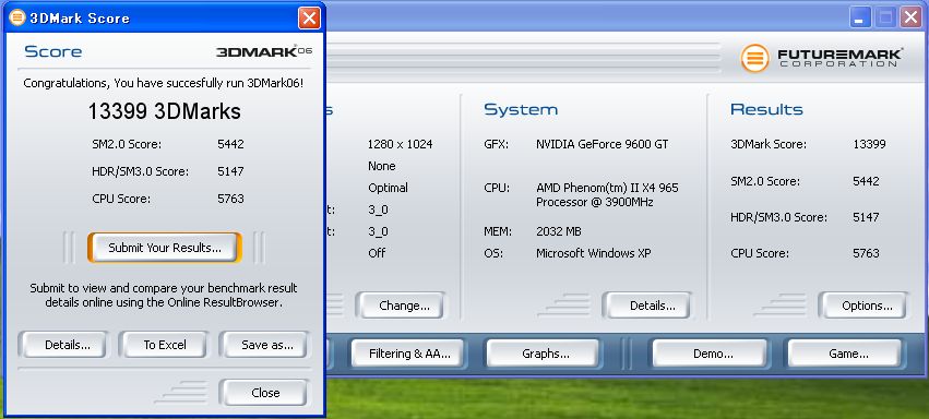 | XP 1280x1024 9600GT/OC | 13399 | 5442 | 5147 | 5763 |