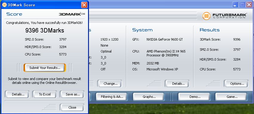 | XP 1920x1200 9600GT | 9396 | 3797 | 3284 | 5773 |
