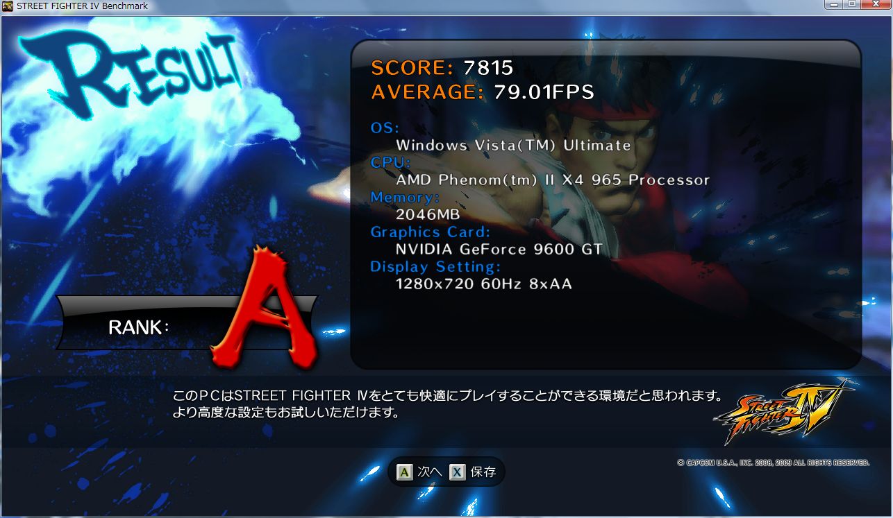 | Vista 1280x720 9600GT | A | 79.01 | 7989 |