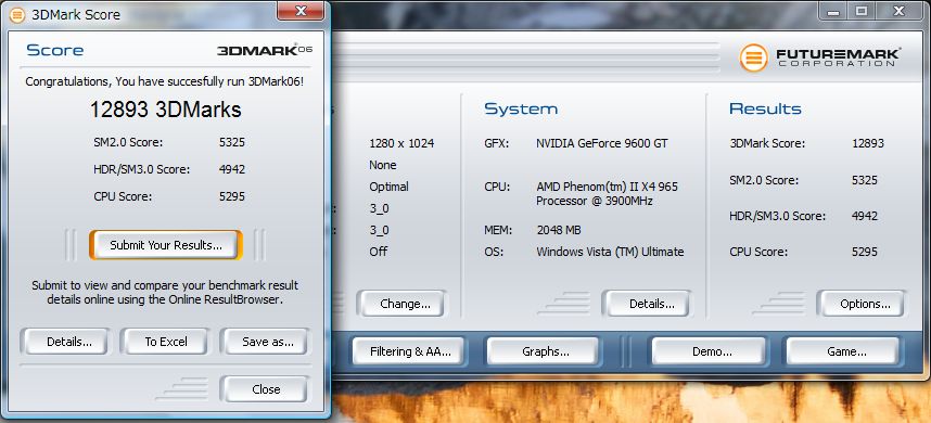 | Vista 1280x1024 9600GT/OC | 12893 | 5325 | 4942 | 5295 |