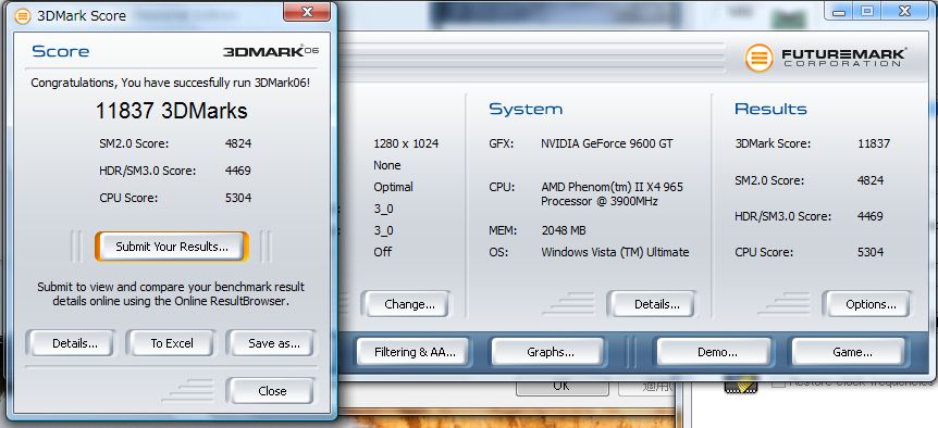 | Vista 1280x720 9600GT/OC | A | 87.13 | 8272 |